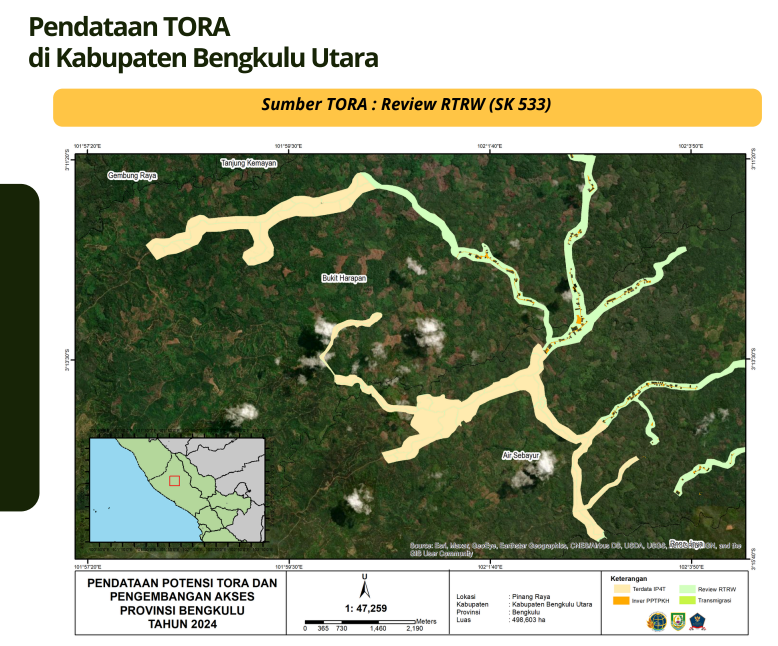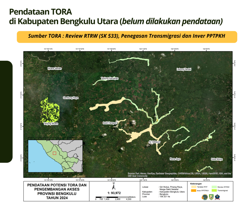 - Potensi TORA yang belum terdata berasal dari RTRW (SK 533) seluas 652,54 ha, inver PPTPKH seluas 48,94 ha dan penegasan transmigrasi 623,96 ha